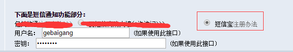 配置方式:用戶名和密鑰填寫上短信寶賬號和密碼即可