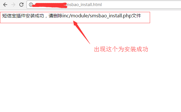 安裝成功后請按照要求將 inc/module/smsbao_install.php文件刪除。