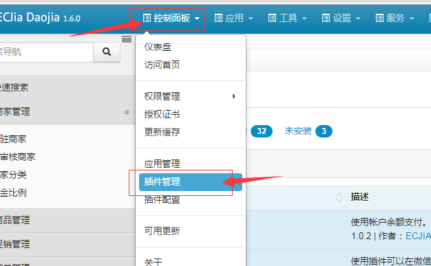 二:在控制面板->插件管理中心,在插件列表第二頁(yè)找到短信寶,點(diǎn)擊安?裝。