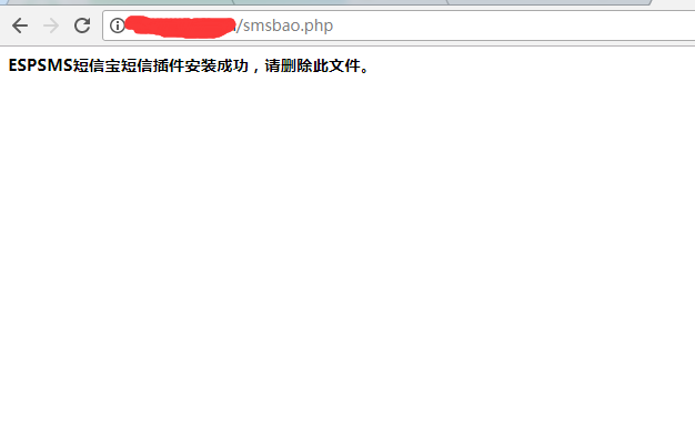 三:輸入你的域名\smsbao.php,進行安裝短信寶插件,看見ESPCMS短信寶插件安裝成功,請刪除smsbao.php和smsbao.sql文件 即為安裝成功,插件安裝失敗請聯系短信寶在線客服。