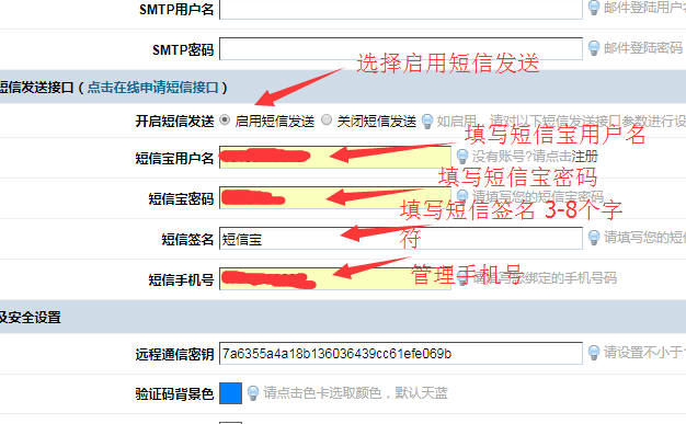 四:進入系統管理后臺->設置->系統設置->其他參數設置->手機短信發送接口 填寫完成保存配置即可。