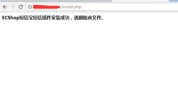 三:輸入 域名/install.php 提示Ecshop短信寶短信插件安裝成功,證明插件安裝成功,安裝成功請刪除install.php和install.sql文件,未提示,請聯系短信寶客服。