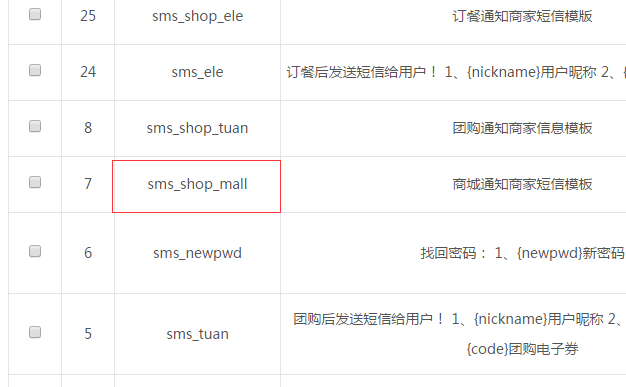 原因就出在模版標簽這里,我們可以對比一下,代碼中的模版標簽是sms_shop_mell,而我們后臺模版所設置的標簽為sms_shop_mall,因為這里的不匹配導致我們的短信發送失敗,只要將后臺模版標簽與代碼中修改一致就可以發送成功了。