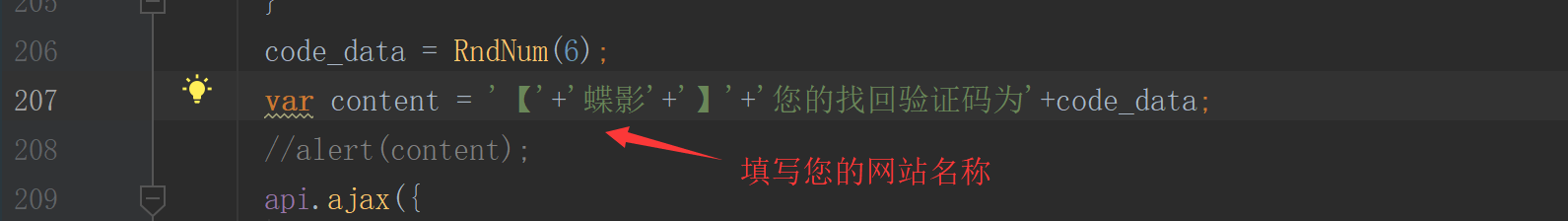 code_data = RndNum(6);var content = '【'+'蝶影'+'】'+'您的找回驗證碼為'+code_data; |