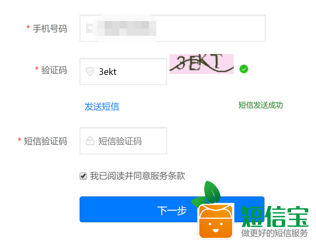經過上面的替換,短信寶的短信平臺已經替換成功了,可以正常使用了。進行測試發送: